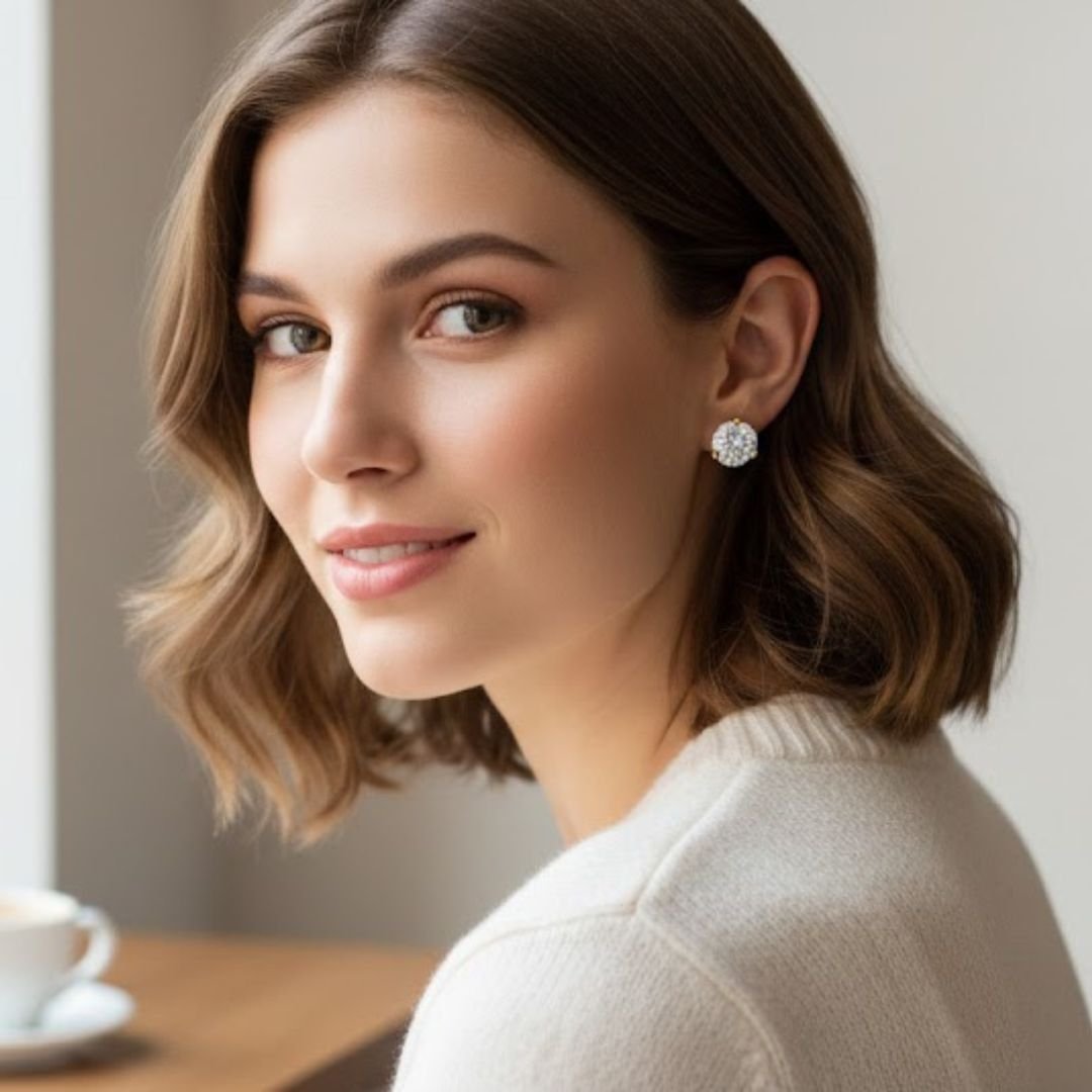 Crafted with precision-cut clear crystals and a durable gold-tone plated metal setting, these earrings are designed for lasting shine and reliable everyday performance. The secure prong setting enhances brilliance while keeping the stones firmly in place.