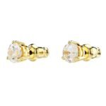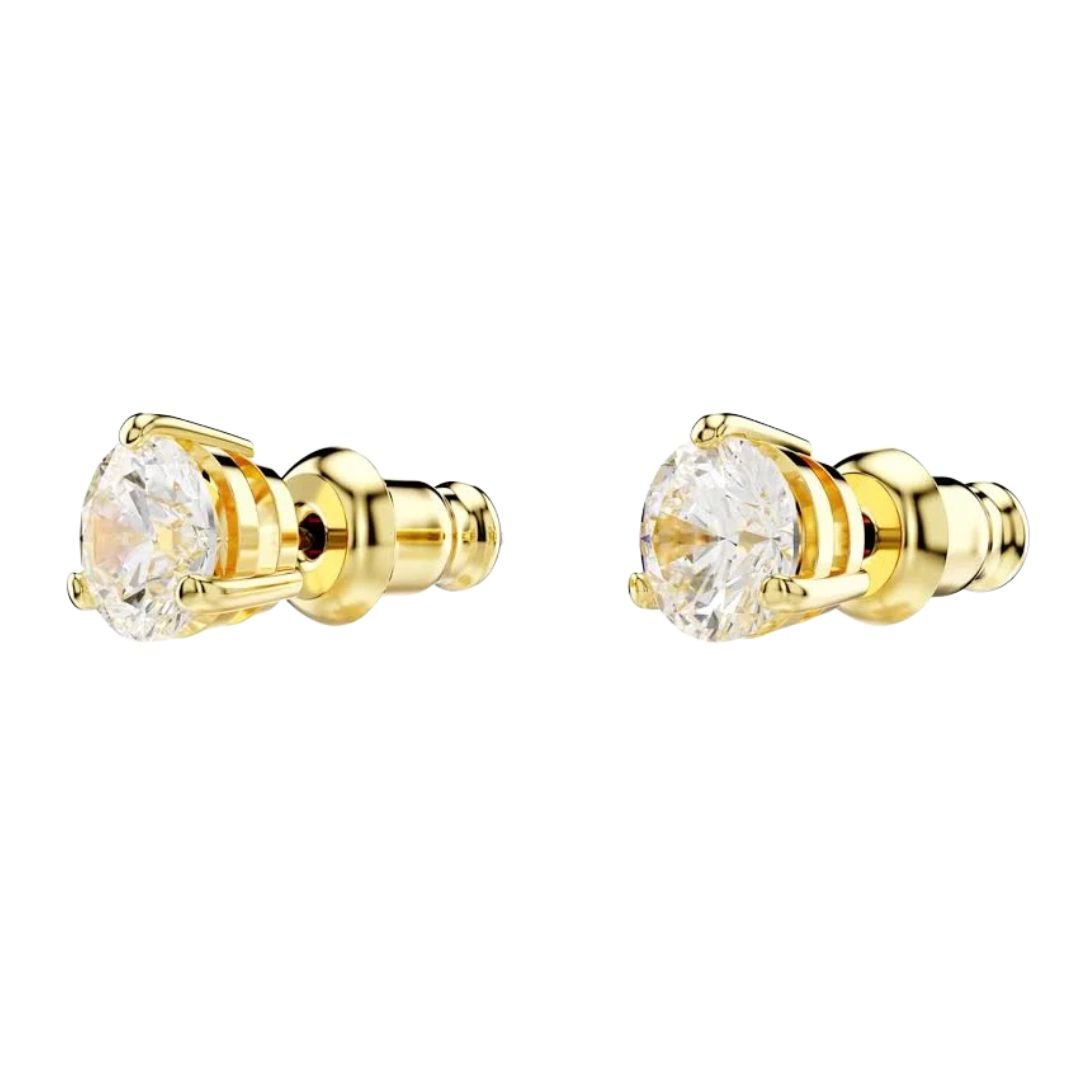 • Features a clear round-cut crystal for radiant sparkle • Classic solitaire design that complements any outfit • Warm gold-tone plated setting for a refined finish • Lightweight and comfortable for all-day wear