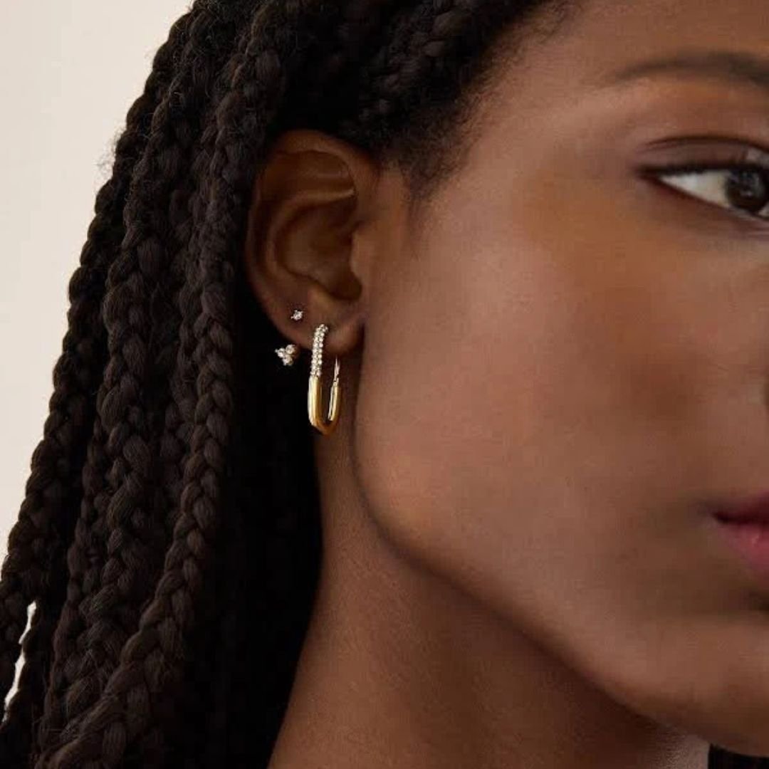 • Unique paperclip-inspired hoop design
